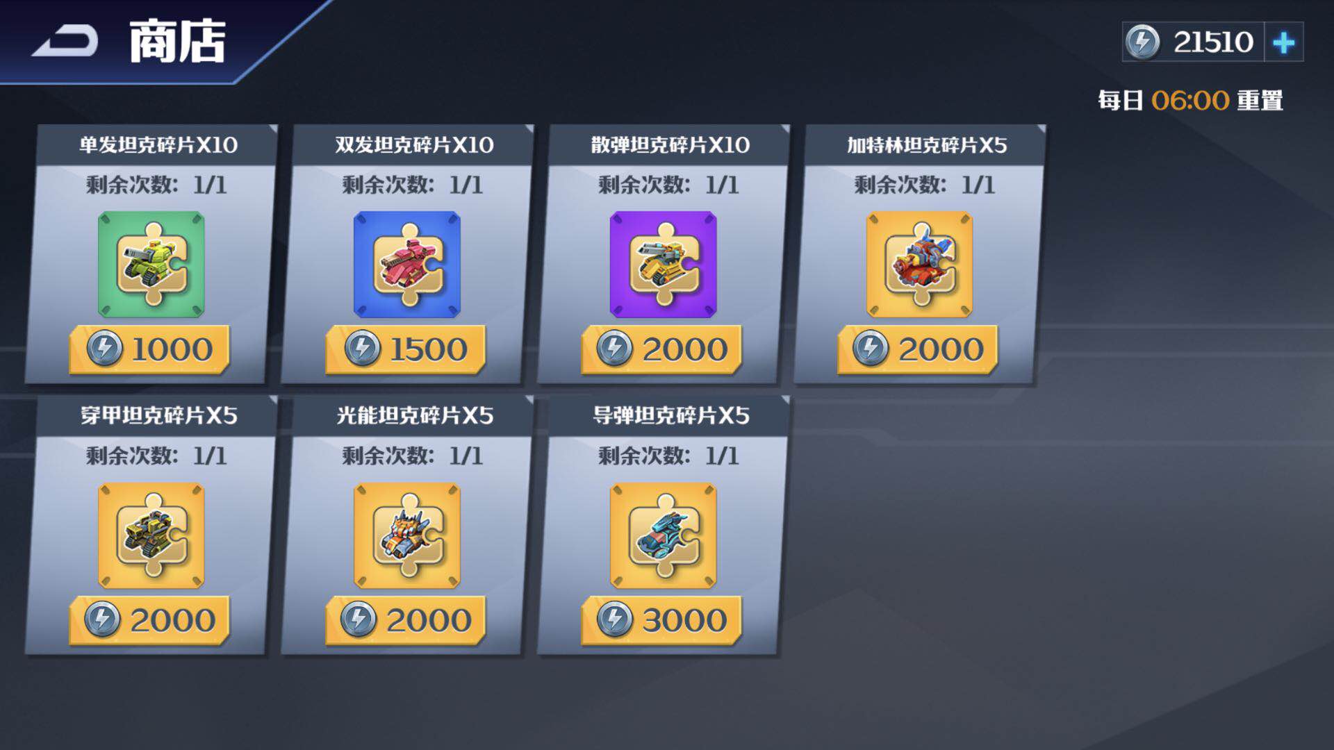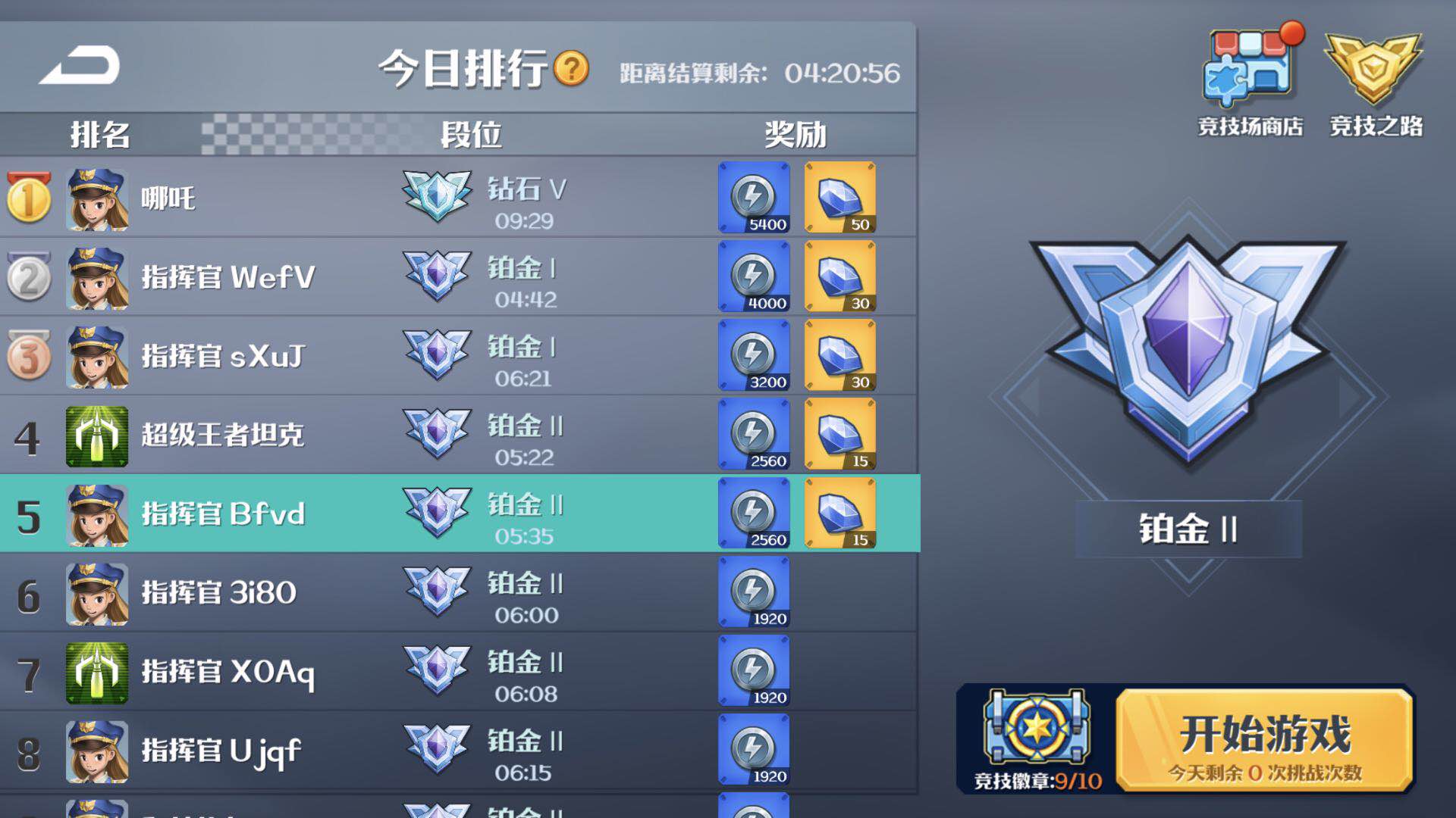 排名奖励每日结算,奖励主要是竞技币和少量钻石。竞技币可以在竞技商店购买各种坦克碎片,是培养高阶坦克的必备。