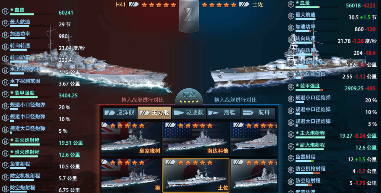 战舰基础数据:(满改)如果说41是能打出五炮覆盖输出还远超五炮战列的四炮战列,那土佐就是五炮能打出四炮效果结果输出不仅远低于4炮战列副炮还在加血的最丢人五炮船