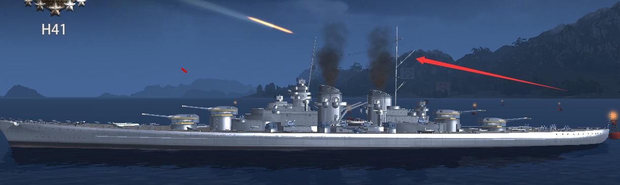 战舰火力特点:四炮战列舰,爆伤穿伤都有提升,目前短时间爆发输出最强的战列舰,高压填装技能使得h41能够在短时间内连射两轮主炮,标准主炮打驱可以同一时间覆盖24颗炮弹(全四联就是32颗)是目前唯一一艘,四炮战舰能够打出五炮火力,同时火力输出还远超五炮战列舰的德战精英,不论是巨舰对轰还是炮击小皮艇,都能有不错的表现。