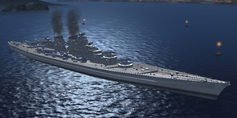 至于模型的大小,41的模型是要比麦子大得多的,虽说整体舰身部分做的比较低矮,但是桅杆特特特特特特别高,再加上41的转向并不优秀,在实际战场上要躲开炮弹啥的几乎不可能了。至于具体多大呢。。。。比麦子大那么一圈是毋庸置疑了,就放两张和密苏里的对比图吧,大密在游戏里是出了名的想打不中都难之伤害提款机,41的长度甚至还要比大密还要长出那么一截。
