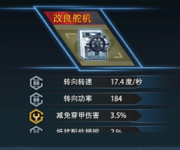 改良舵机同样分为输出和防护两种类型,需要防护属性比较容易刷到的就是减免穿甲伤害了,随随便便就能刷到5%以上(基础1%+0.1%n),规避中口径炮弹个人还没刷出来过,没法评估价值,不过加成程度要是与大口径规避的0.5%+0.05%n相同,那么实用性肯定不如规避大口径了