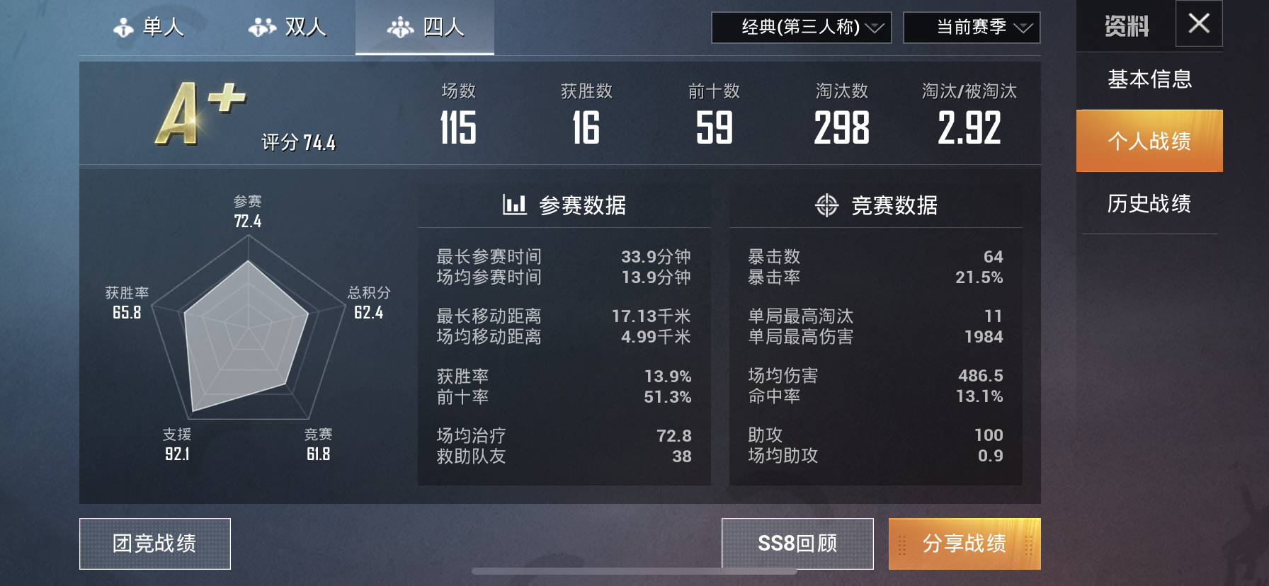 我的感觉是其实落地钢枪并没有那么可怕,只要你心态放平,思维清晰,就算56个队一起跳同一地方也丝毫不慌,当然了,偶尔几把也会落地成盒,其中打法细节大家都懂,我就不说了,我想说的是,对自己一定要自信,其中战况如何,打就要打出自己的自信,不是谁开始就是大佬,大佬都是不断地刚不断成盒才练成的,是吧,所以我也要努力练,是男人就钢起来,不经历风雨怎会见彩虹,苟分只会越苟越菜