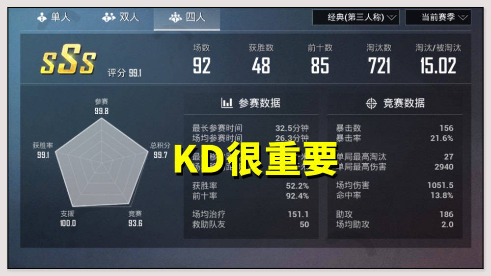 同时玩家心理会产生变化,有了这样的高水平队友,这局游戏稳了!似乎只要跟着他,就可以吃鸡。所以说,KD值的高低,不仅是技术的象征,还能对心理产生积极的影响。