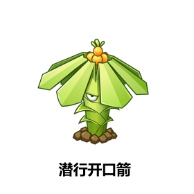 潜行开口箭:僵尸进入攻击范围后,突然从土里跳出,向下范围扫射,用叶片作为子弹进行攻击。