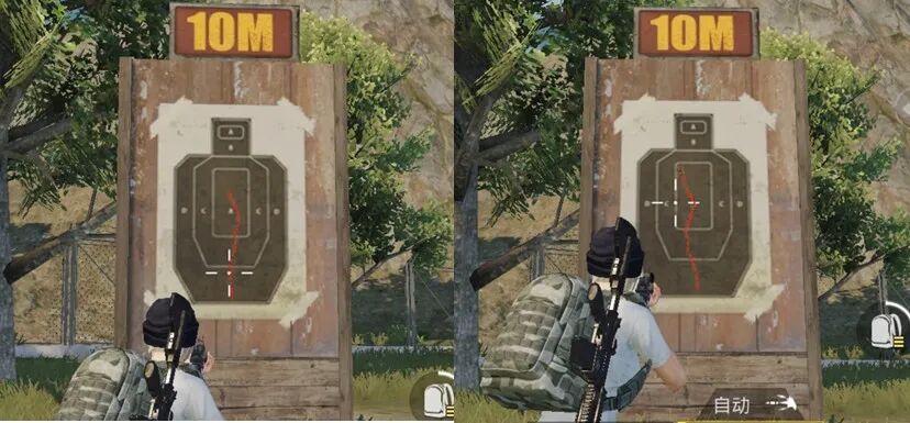 我们从上面的测试中可以看出,装备消音器的M416与无配件的M416的10M射击弹道几乎没有差别。