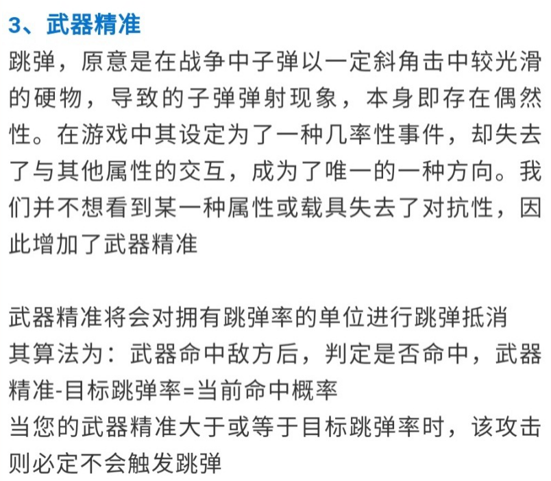 另外,笔者个人建议,跳弹其实可以作为载具的自带属性单独保留,或加入物理引擎中,当然,这是远景规划了。