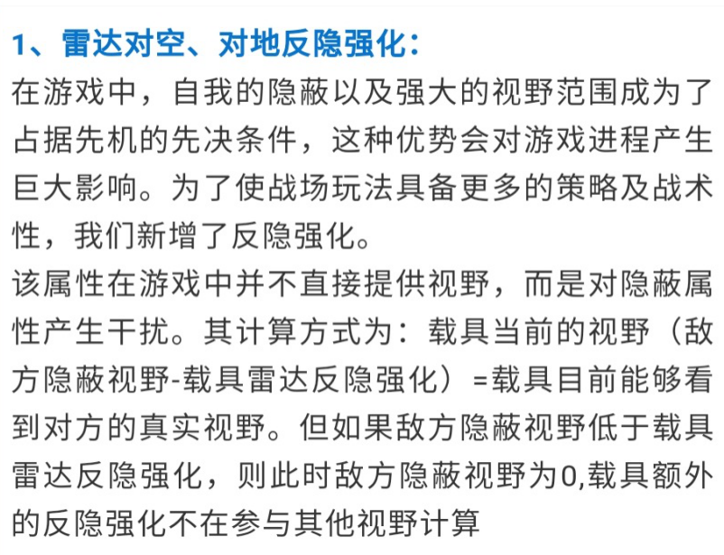 反隐强化的意义就是降低隐蔽的价值,这样就相对提升侦测的价值,也增加了双方的战斗距离,从而提升对抗性——拉扯距离的增加,使得战术更富于变化,这点对于高技术玩家的增益不小。