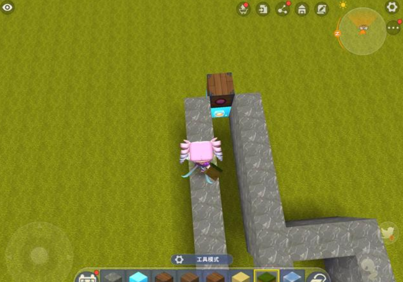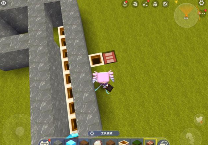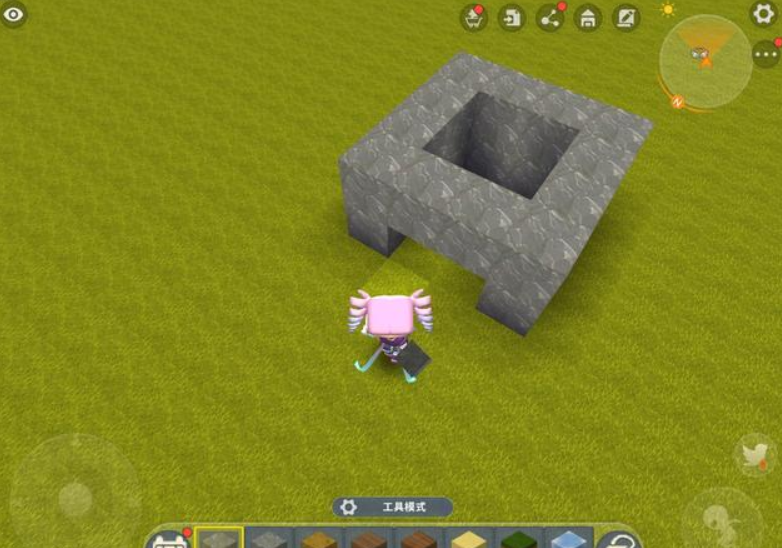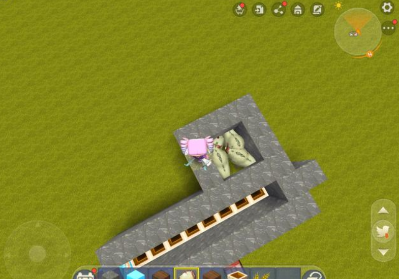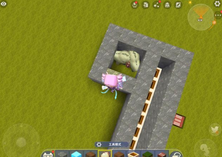 以养牛为例,玩家先用方块搭出一个2格高的畜牧养殖场,这个养殖场的空间不需要太大,只要能放下两头动物就足够了。在搭建过程中,选择养殖场的其中一面将第一格方块留空,只搭建第2格。