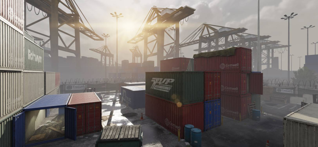 首先登场的装卸货场-现代几乎完整还原端游的地图,建筑设备都焕然一新,质感十足!