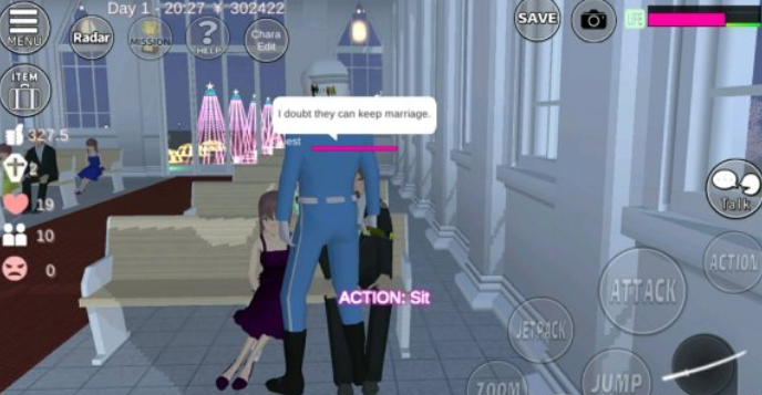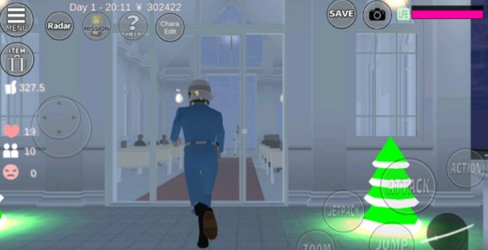 突然想起有个任务还没做,我就把时间调成晚上8点,来到了教堂,开始我的“谋杀任务”。如图3,我们的老油条手里持着武士刀大步跑向婚礼现场。