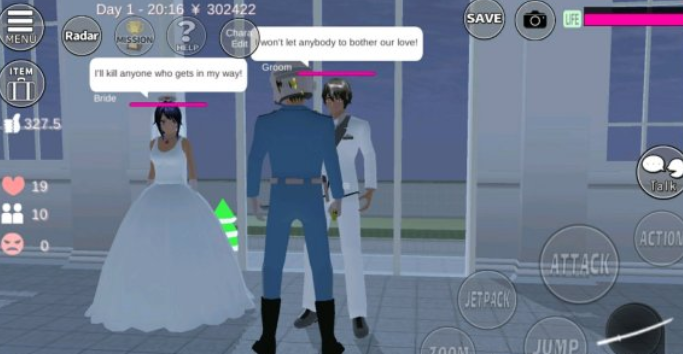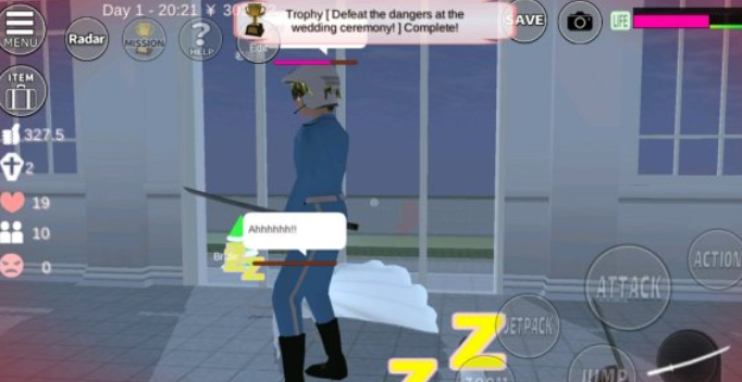继续任务,跑到新郎新娘面前。是的,我收到了他们的警告,But,I don't care!就这么突然,我以迅雷不及掩耳之势挥起武士刀发起攻击。我知道他们有大炮,但只要我和他们近战,他们就不会拿出大炮打我于是,我就用我锻炼得刚强有力的手臂潇洒地挥耍武士刀,然后顺利地结束了这场任务。
