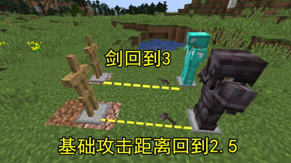 总得来说,剑在不俗的攻击力之下拥有着其余武器不可比拟的高额攻击距离和攻击速度。想要一定程度上“削弱”剑,官方采取了加强斧子属性和相关附魔的更改措施。
