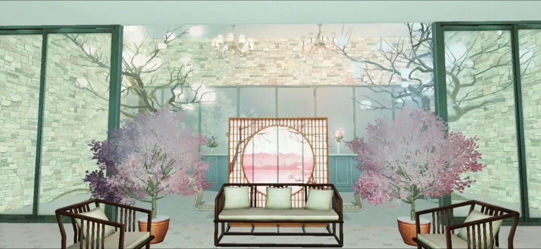 庭院间栽着几棵樱花树