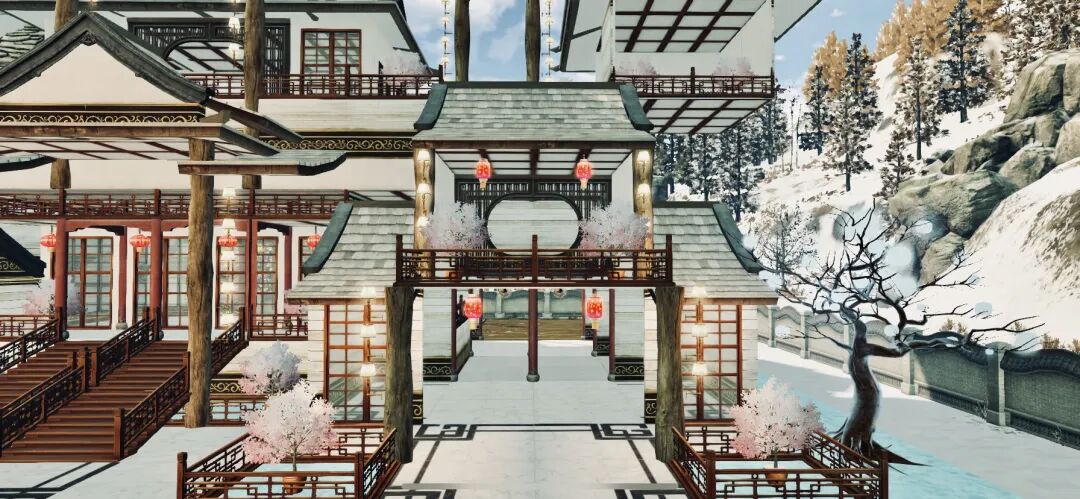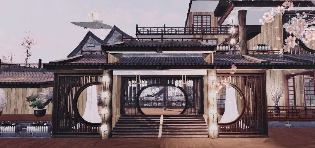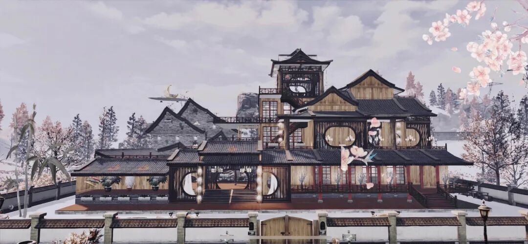 一座中式风的木屋坐落在眼前