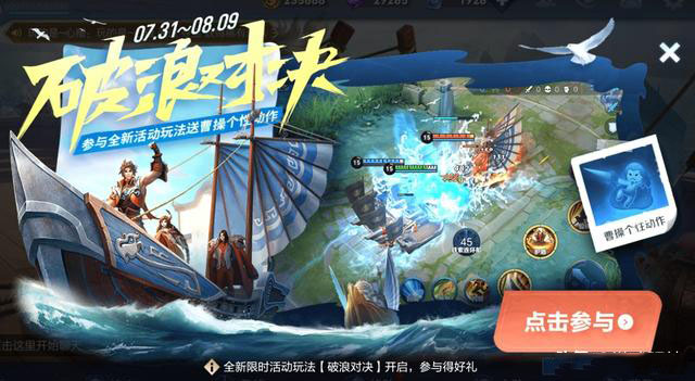 首先此前参与预约活动的玩家,可直接进入玩法匹配界面领取孙策个性动作,而曹操的动作需要参与三场破浪对决才能获得。