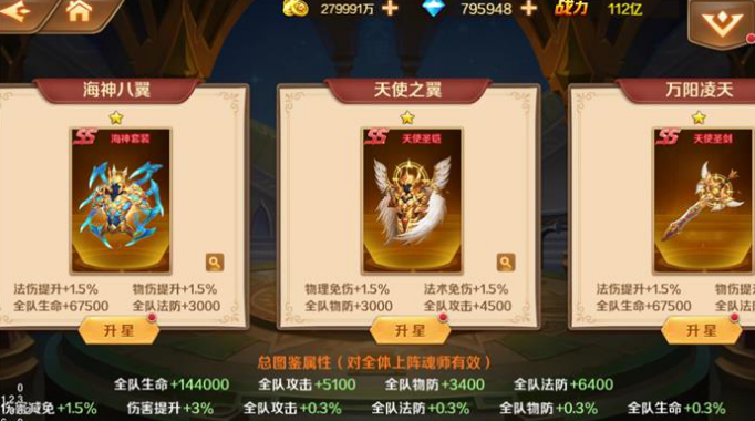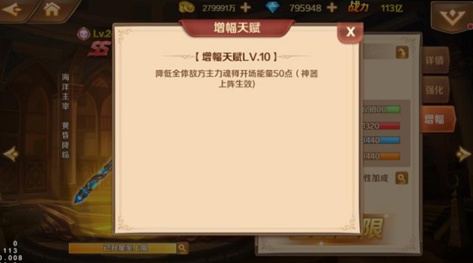 SS及以上品质神器新增神器增幅功能,魂师大人可使用全新道具“增幅水晶”对神器进行增幅,生命、攻击、物防、法防四项属性全部升满后可使用全新道具“神谕水晶”进行突破。