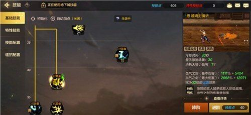 从转职后开始,每可学习一个新的技能都要加满。10级以开始的技能除燃烧之血外,全部加满,觉醒后可以从嗜魂封魔斩或者十字斩里扣除技能点来加一次觉醒的主动和被动技能。