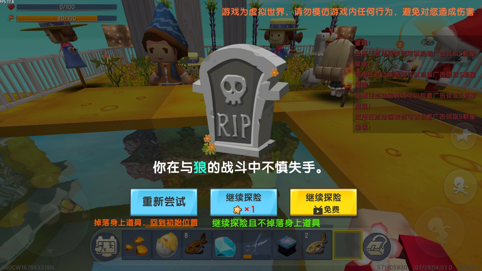 死了无数次,终于把空岛建好了
