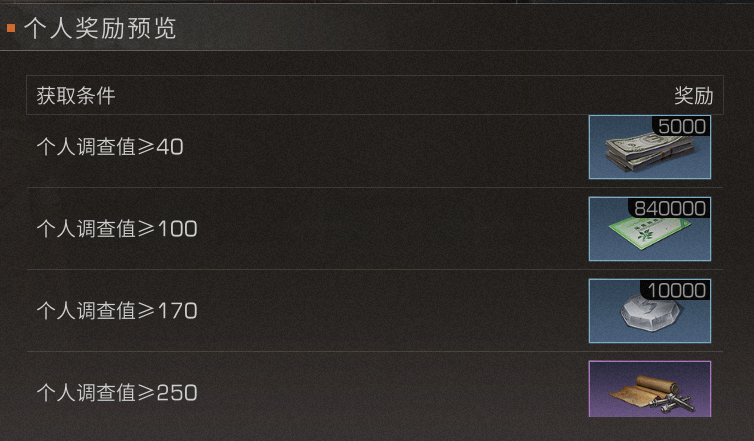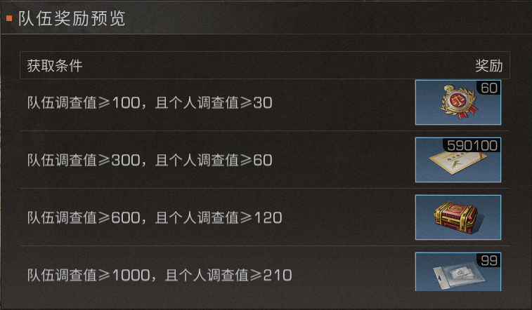 累积调查值能够兑换不同奖励