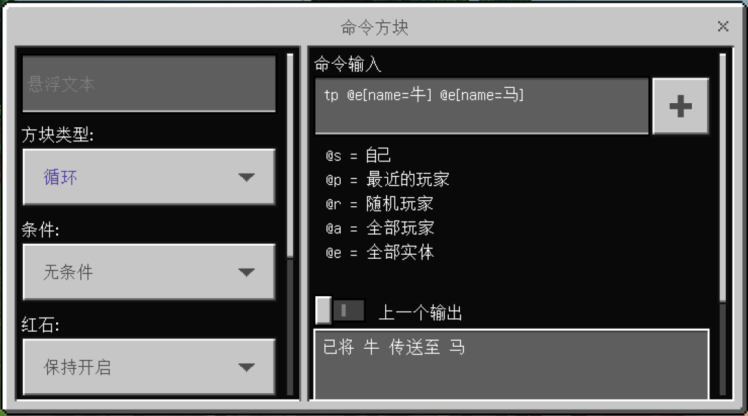 tp @e[name=牛] @e[name=马]