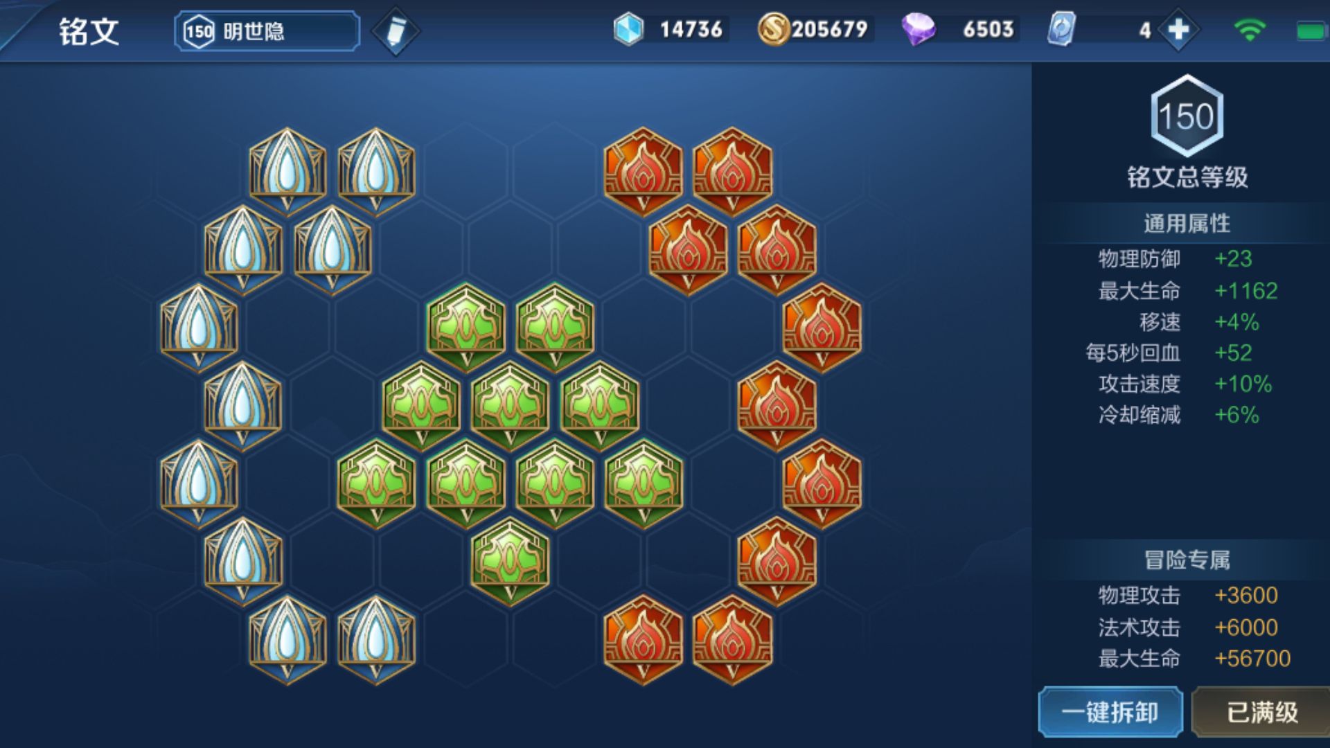 铭文选择带千血铭文,这样可以增加我们的生命值让我们释放大招后不至于血量太低,移速和冷却缩减也是明世隐所需要的。