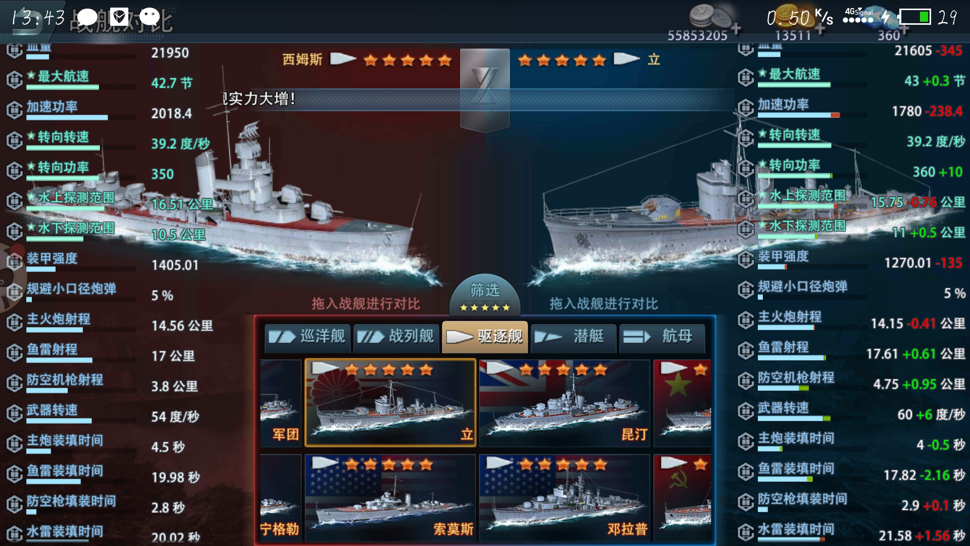 从航速上来看,夕立和南充站在了统一战线,都是43节,比西姆斯快了0.3节。