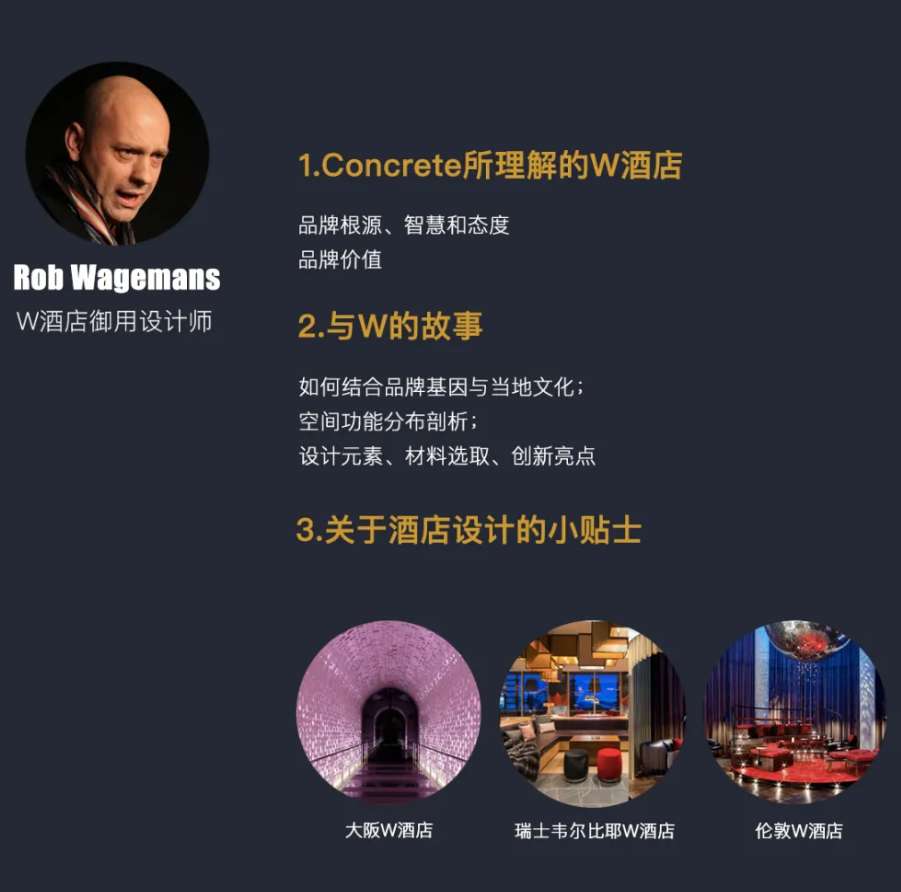 来自W hotel的御用设计师Rob Wagemans的分享:三个W酒店的设计,提前欣赏了最新开业的大阪W酒店魅力。