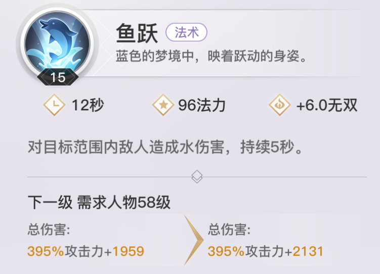【鱼跃】主要范围法术伤害技能。