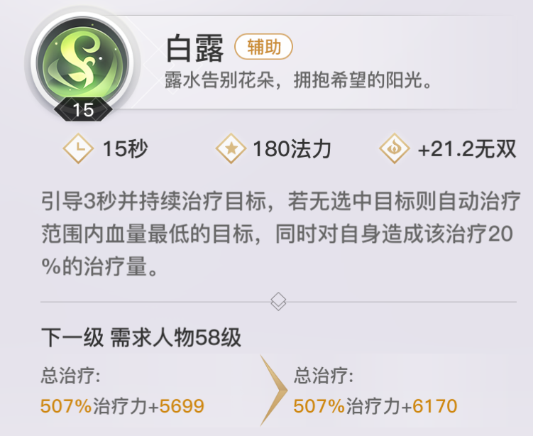 【白露】单体持续治疗技能,引导期间可移动可打断。
