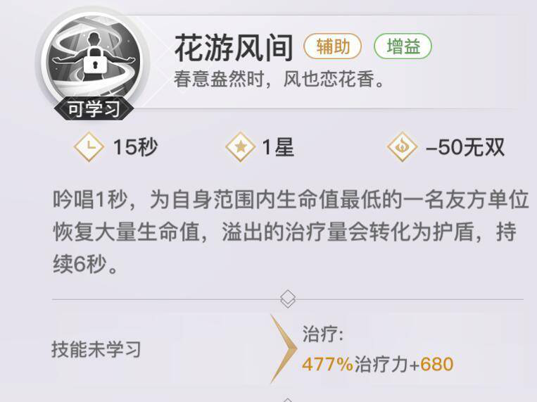 【花游风间】单体大量治疗技能。
