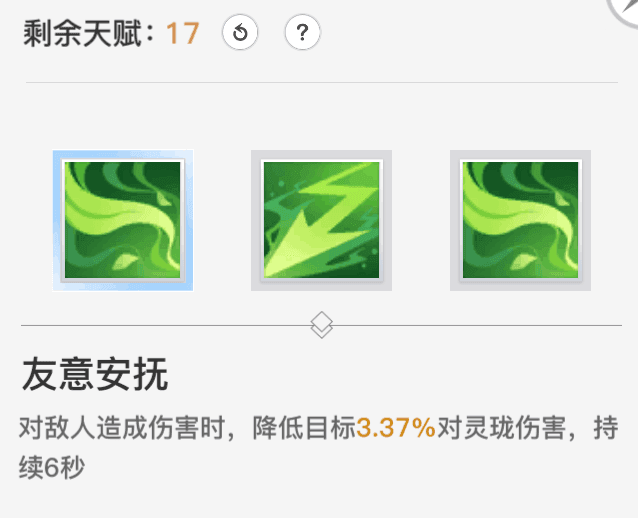 【友意安抚】减伤天赋。