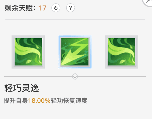 【轻巧灵逸】提升轻功恢复速度。