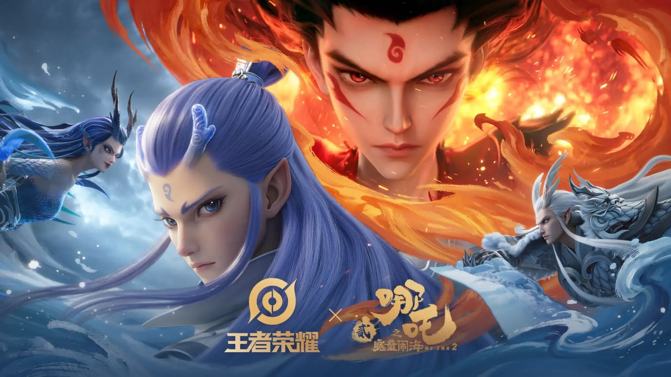 回复哪吒-魔丸·哪吒、敖隐-灵珠·敖丙、铠-东海龙王·敖光、芈月-西海龙王·敖闰集结王者峡谷,演绎一场别开生面的红蓝对抗。还有——