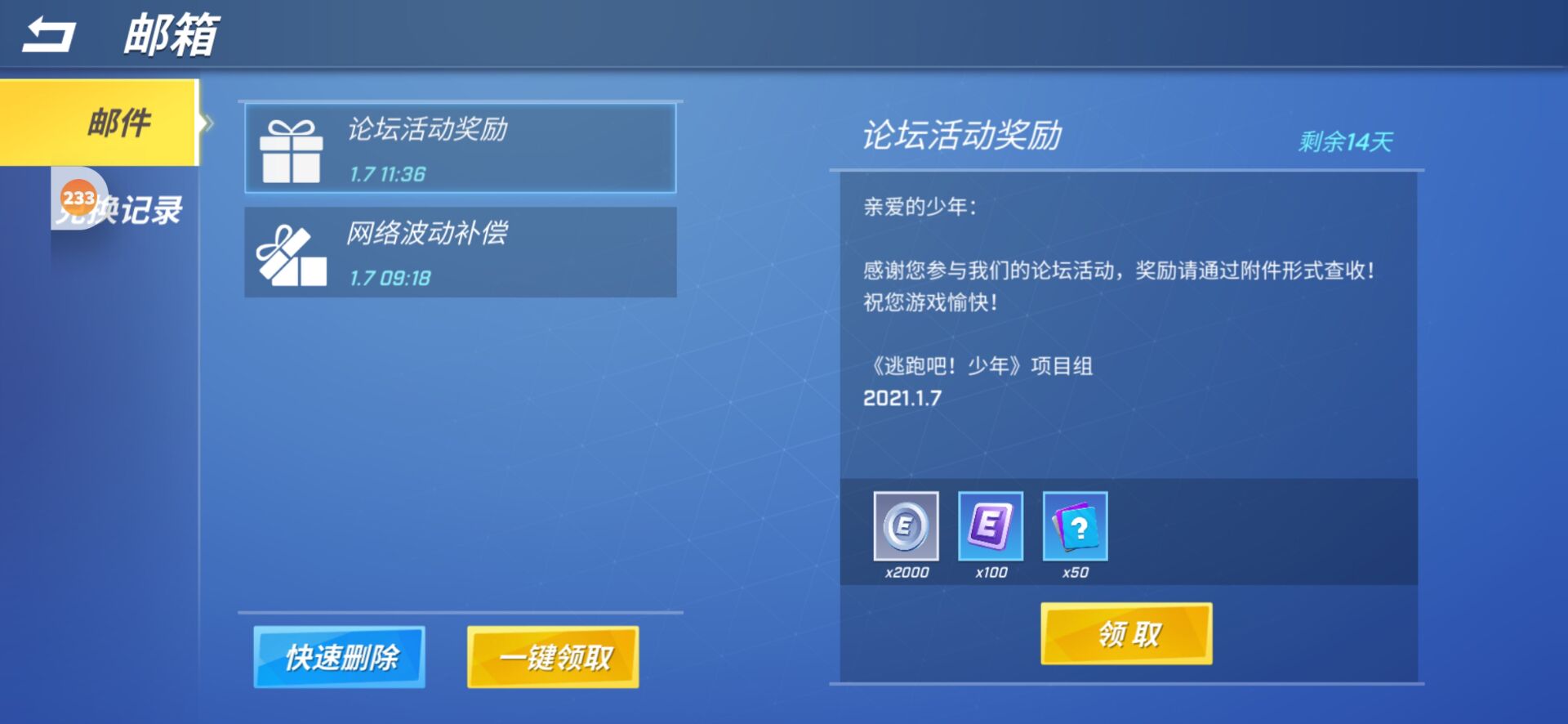 幸运鹅本鹅,收到233乐园给的活动奖励了!!