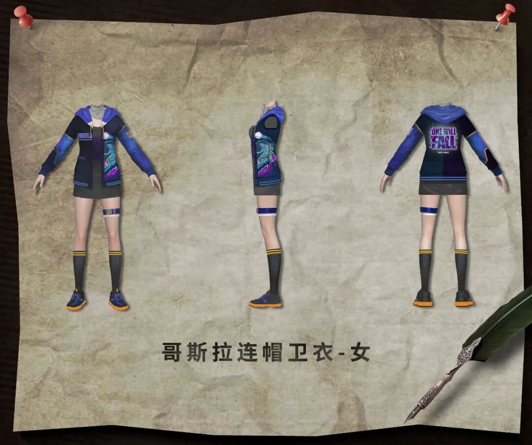 黑、蓝、紫三主色结合的卫衣