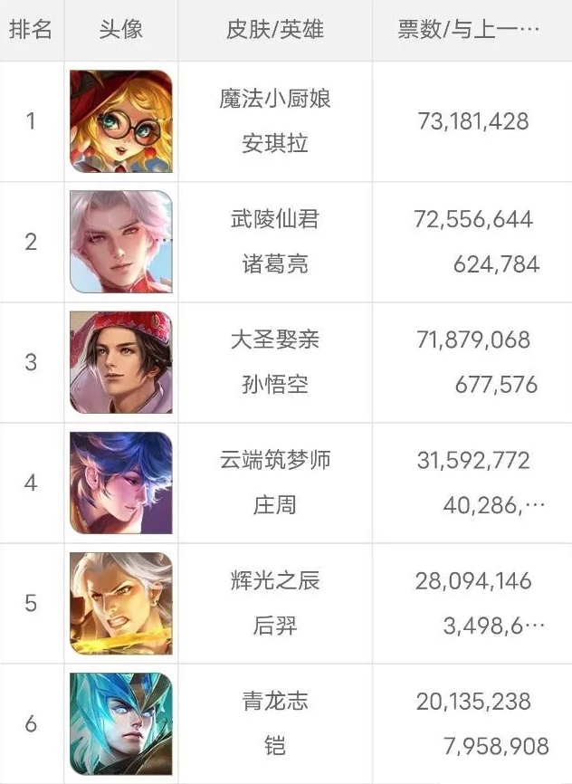 周年庆返场皮肤的投票规则相信大家都已经看到了,除了前两名照常返场外,第3-5名的皮肤大家可以任选一款进行购买,这样一来,就能有更多的玩家可以买到自己喜爱的皮肤了。所以七七估计今年的投票就不会像以往那样费尽心机拉票,能够相对和谐些。