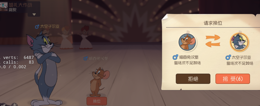虽然在婚礼大作战中将会是2V4的对抗模式,但1猫1鼠的守护小队可不是弱势一方,因为守护小队成员的游戏初始等级会高于捣蛋军团的4只小老鼠 ,而且守护小队还可以在角色选择前根据各自的猫鼠熟练度自由换位哦!