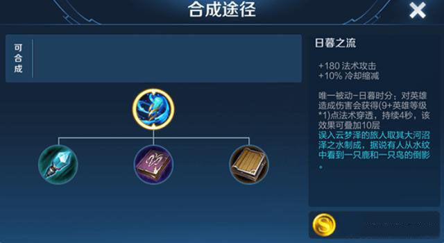 日暮之流的定价为2120,在所有成品装备之中,属于正常水平。而这件装备基础属性能够提供180点的法术攻击,以及10%的冷却缩减。并且,日暮之流还有装备的唯一被动日暮时分:对英雄造成伤害会获得一定的法术穿透效果,并且这个效果是可以叠加的,最高可叠加十层!
