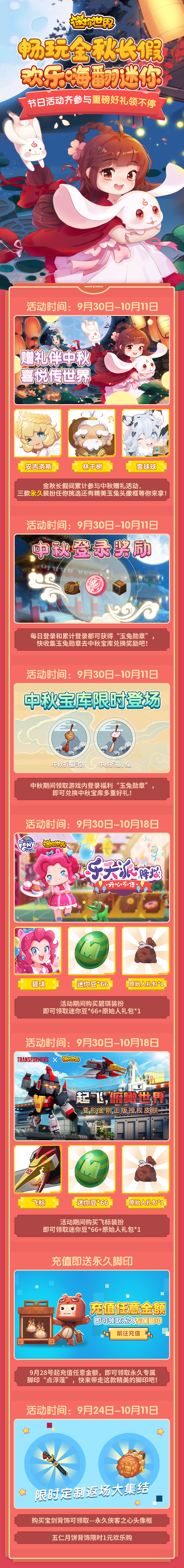 在这个金秋长假里,《迷你世界》到底为我们准备了哪些福利呢?赶快跟着兔美美一起看看吧~