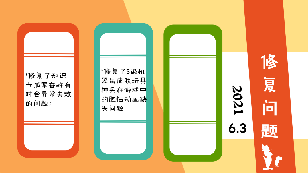 以上就是本周(6月3日)更新维护的全部内容,感谢小伙伴们对于《猫和老鼠》手游的支持和喜爱,愿欢乐永远陪伴大家左右!