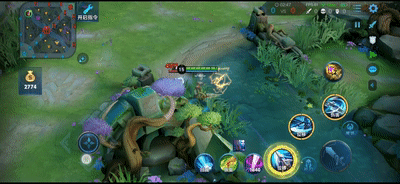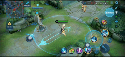 我们打出强化普攻时可以往回拉,这样就可以将野怪或者敌人往回挑。