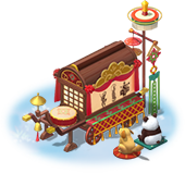 点点装饰布设在前往游园会的路上,古色古香的街灯告示照映着路边的箱箧。