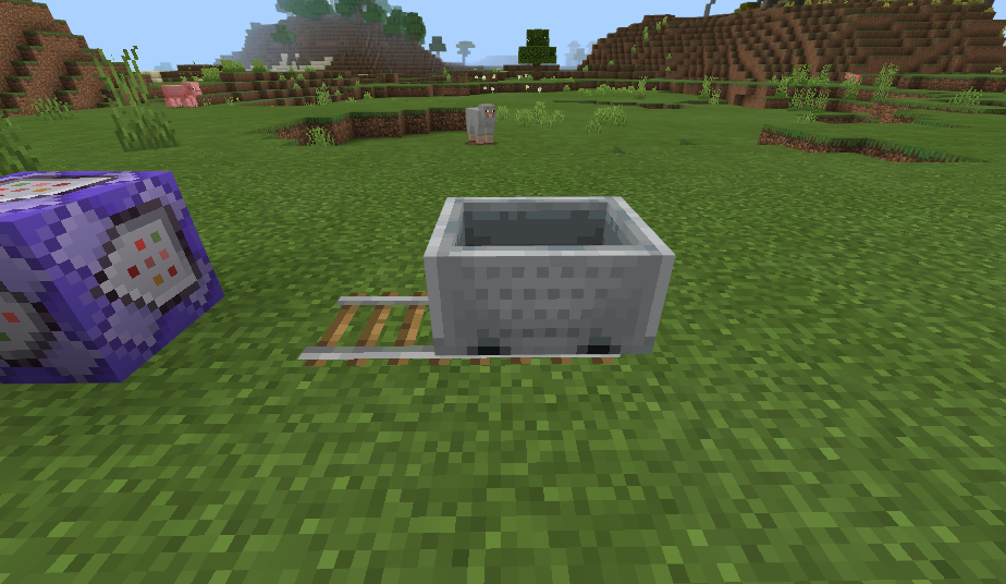 然后在地面放置铁轨和矿车