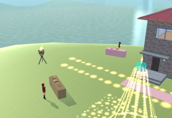 沿着小路行走,左边是露天餐饮区