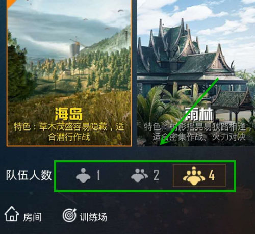 6、如果要选择组队人数,同样可以在模式界面中,在队伍人数中根据需要,可以选择“1”、“2”、“4”为组队人数。