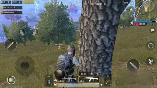 7、在与其他玩家相遇拼火时,尽量找有掩挡物的地方隐藏。例如,草丛、树后、石头后或者是背坡反斜。