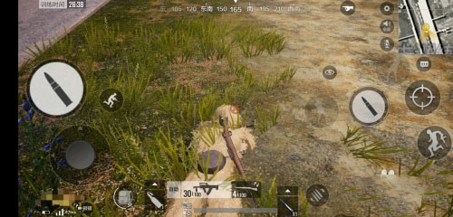 11、在决赛圈没有掩挡物时,如果是趴在草地上,必需要将“背包”丢掉,以防其他玩家发现自己。
