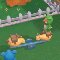 小摩尔还可以在邻居空地上,和邻居一起荡秋千、玩跷跷板、坐摇摇车。