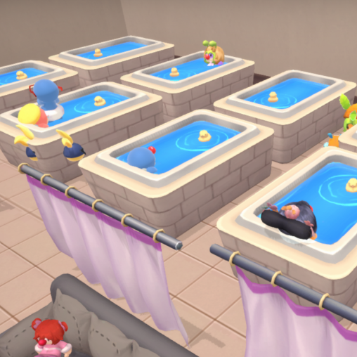 邻居和小镇的家具更注重多人互动体验,小镇可以装扮成游乐园,旋转木马支持多个小摩尔同时玩。