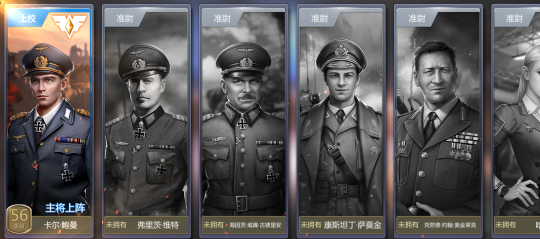 指挥官小编白票一个卡尔,其它未获得,有点可怜。军官5个5星凑齐但没有升级和升阶满。玩巅峰坦克一年半时间,以上就是小编当时的全部家当。